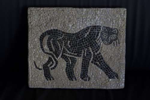 Copia di un dettaglio del mosaico del Mito di Orfeo (S. Anselmo all'Aventino, Roma). Marmi su malta.