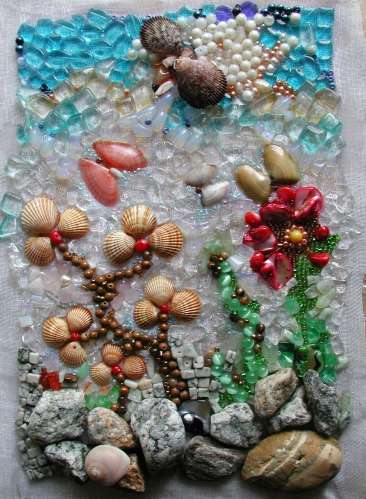fiori farfalle e sparviero - mosaico a perline