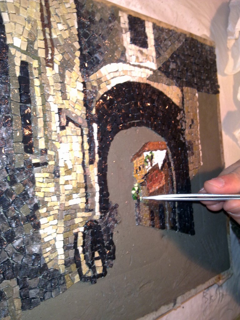 La prima tecnica che si apprendera` e l`opus tesselatum romano, in seguito si studiera l`opus musivu e in fine l`opus vermicolarum del micro mosaico.